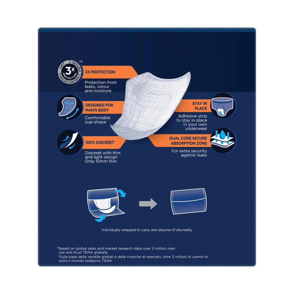 Tena Men Absorbent Protector Level 3 Super Incontinence Pads - 8 pack