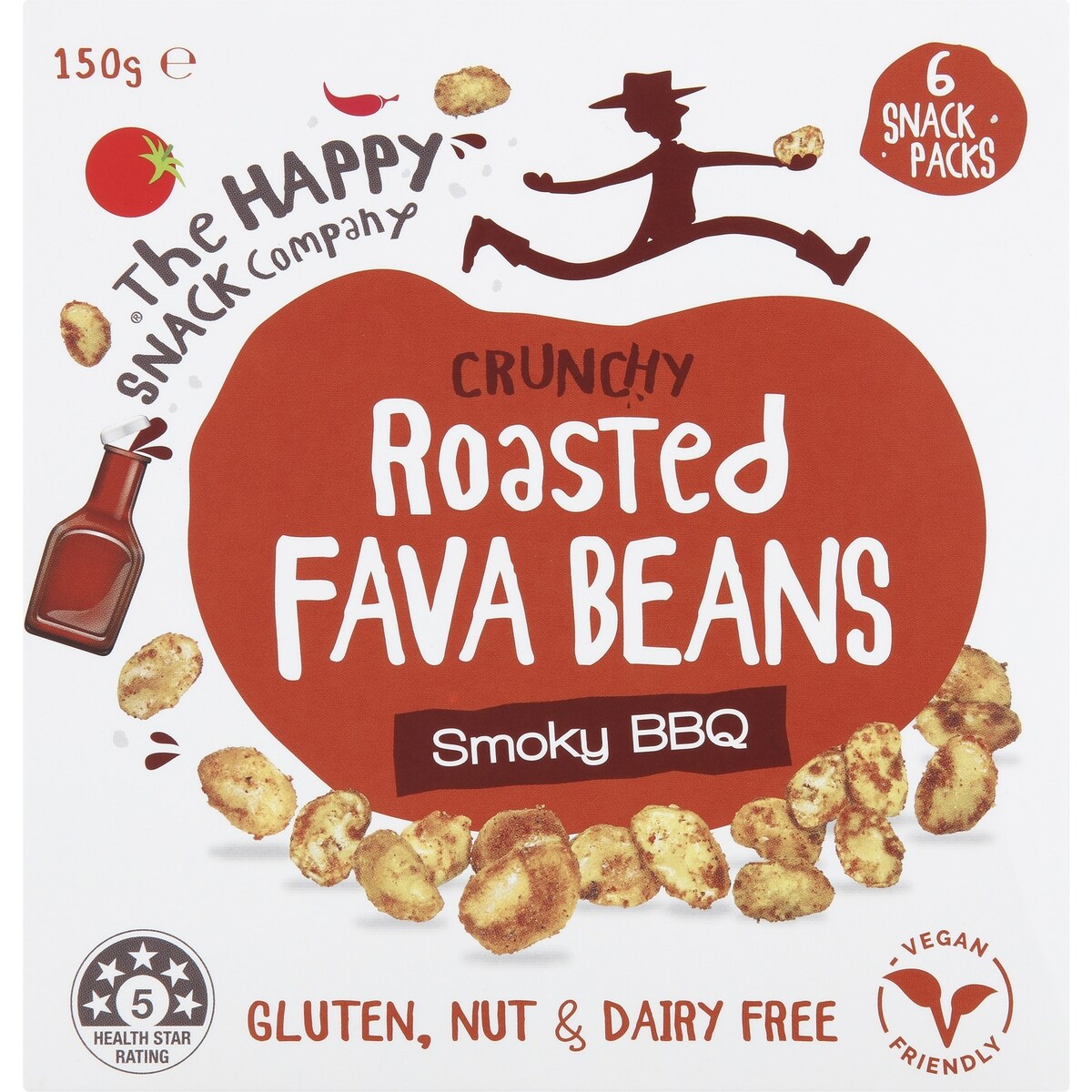 The Happy Snack Company Roasted Fava Beans Smoky BBQ 6 pack