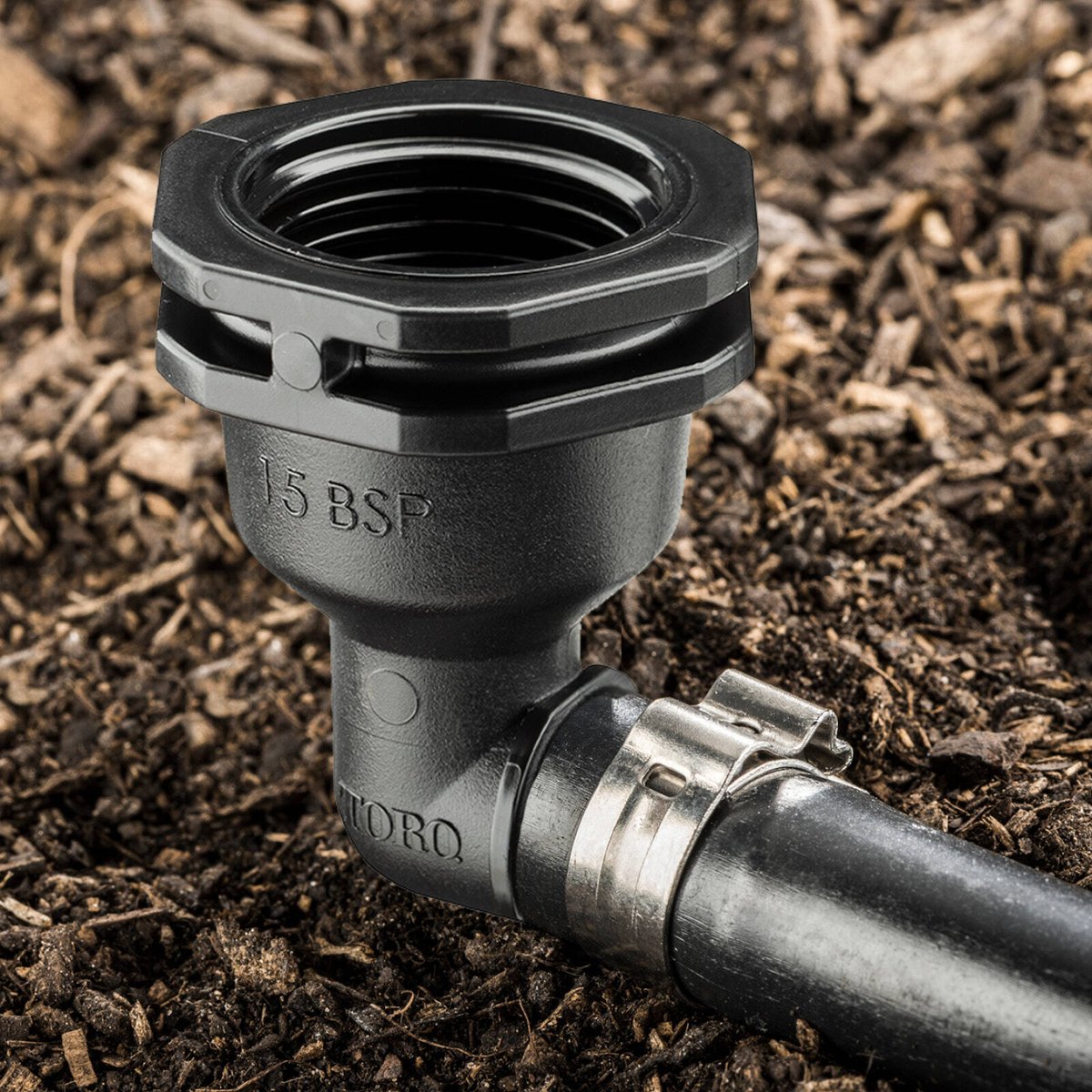 Toro Barbed Female Threaded Elbow is designed for reliable connections in irrigation systems.