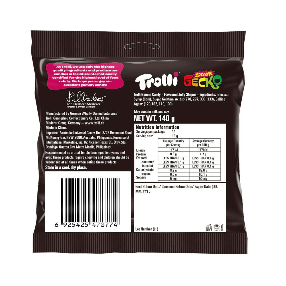 Trolli Sour Gecko Bag - 140g