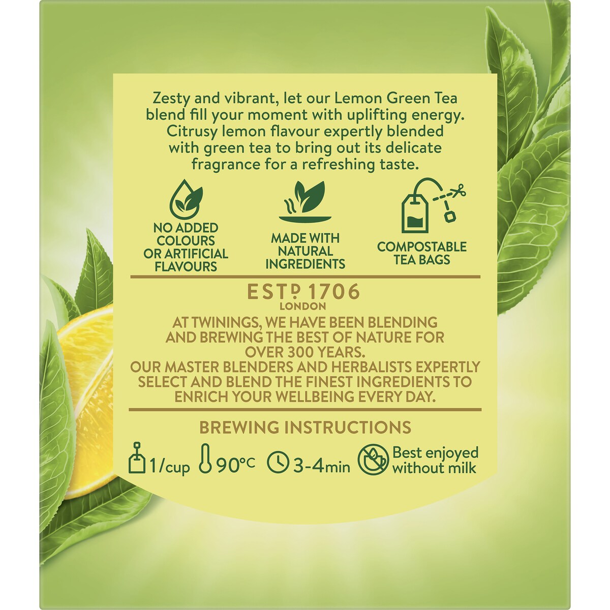 Harmoniously balanced, Green Tea & Lemon are perfect for each other.