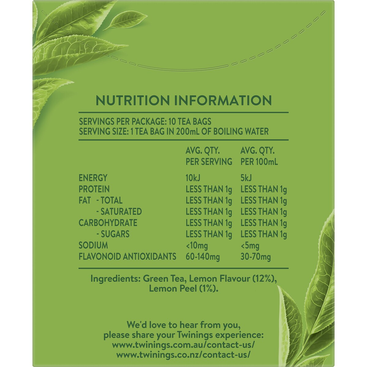 Twinings Green Tea & Lemon Tea Bags 10 pack