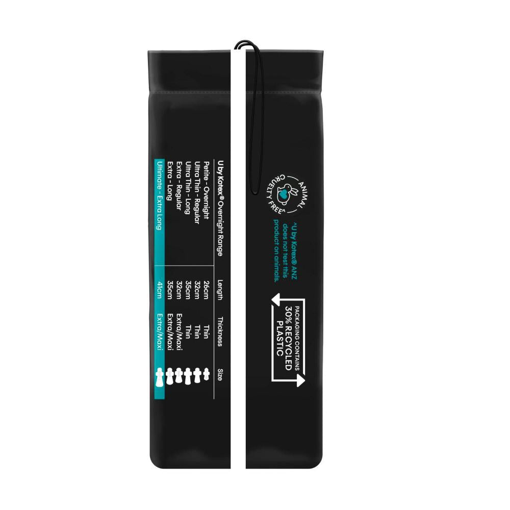 Elevate your protection with our most advanced product, the U by Kotex Overnight Extra Ultimate 41cm Pads. With their thicker build and extended length, these pads offer unparalleled defence compared to our Ultrathin alternatives. Featuring a Flow-Control Channel and a super-absorbent core, they swiftly handle sudden gushes at the source. Our cutting-edge 3D Back Leak Barrier technology ensures you stay dry, comfortable, and thoroughly protected. Because your dreams don't stop when your period starts.