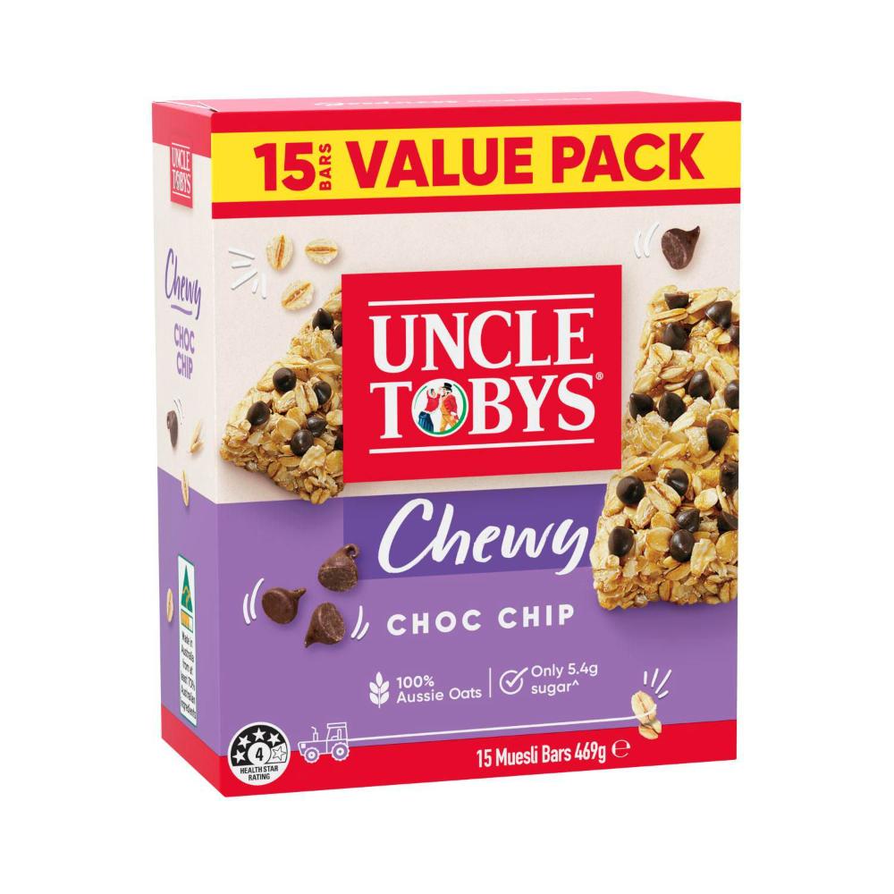 Uncle Tobys Chewy Choc Chip Muesli Bars Value Pack School Lunchbox Snacks - 15 pack