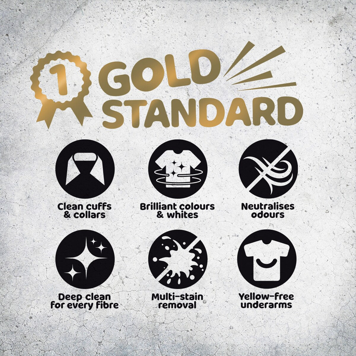 Go for gold and give your laundry a deep, hygienic and refreshing clean of every fibre! Specifically designed to target invisible dirt and body grime particles known to cause malodour and yellowish stains, our Gold Standard Laundry Liquid goes the extra mile to deliver a pristine clean every wash!