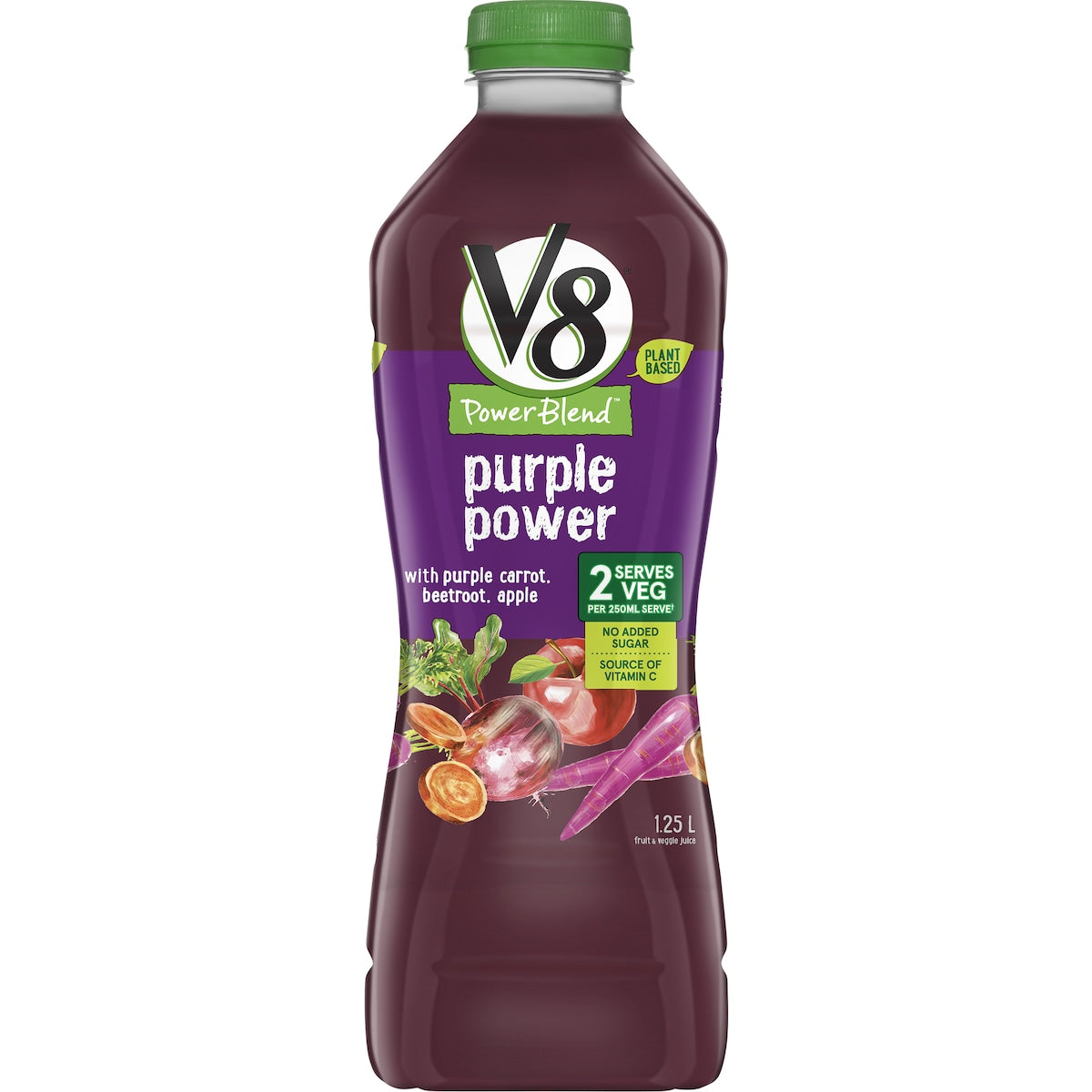 V8 Power Blend Purple Power juice is a healthy antioxidant boost. This purple carrot, beetroot and apple juice contains vitamins. Share this fruit and veg juice with a friend for a healthy morning pick-me-up. Or if you’re short on time, it’s the perfect ambient juice for an on-the-go afternoon top up. Grab yourself a V8 Power Blend fuel up!