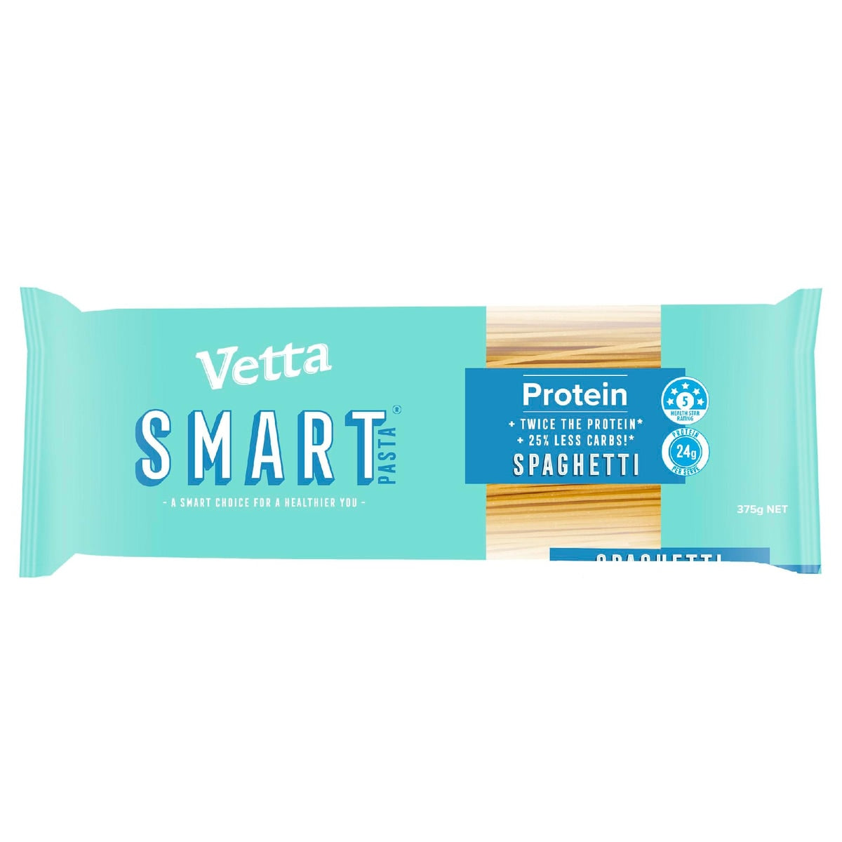 Made from premium Australian durum wheat, Vetta SMART Protein Spaghetti contains twice the protein and 25% less carbs than regular pasta. With 24g of plant protein per serve, and a 5-star health rating, Vetta SMART Protein Spaghetti is the pasta of choice for carb-conscious pasta lovers looking to boost their protein intake.