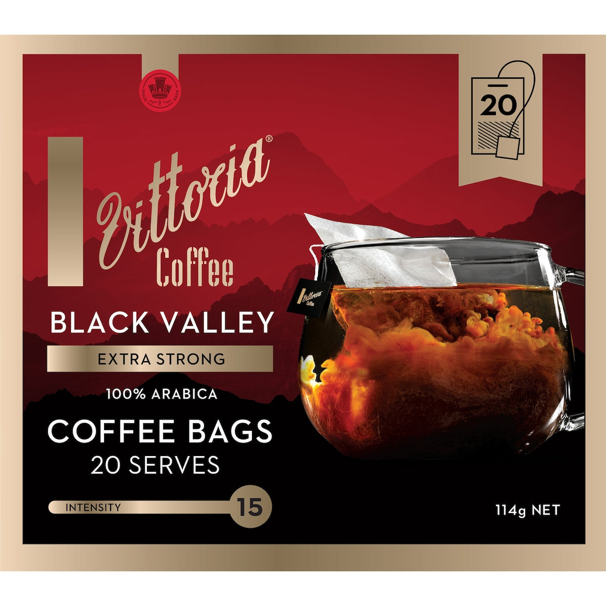 Vittoria Black Valley Coffee Bags Extra Strong 20 pack